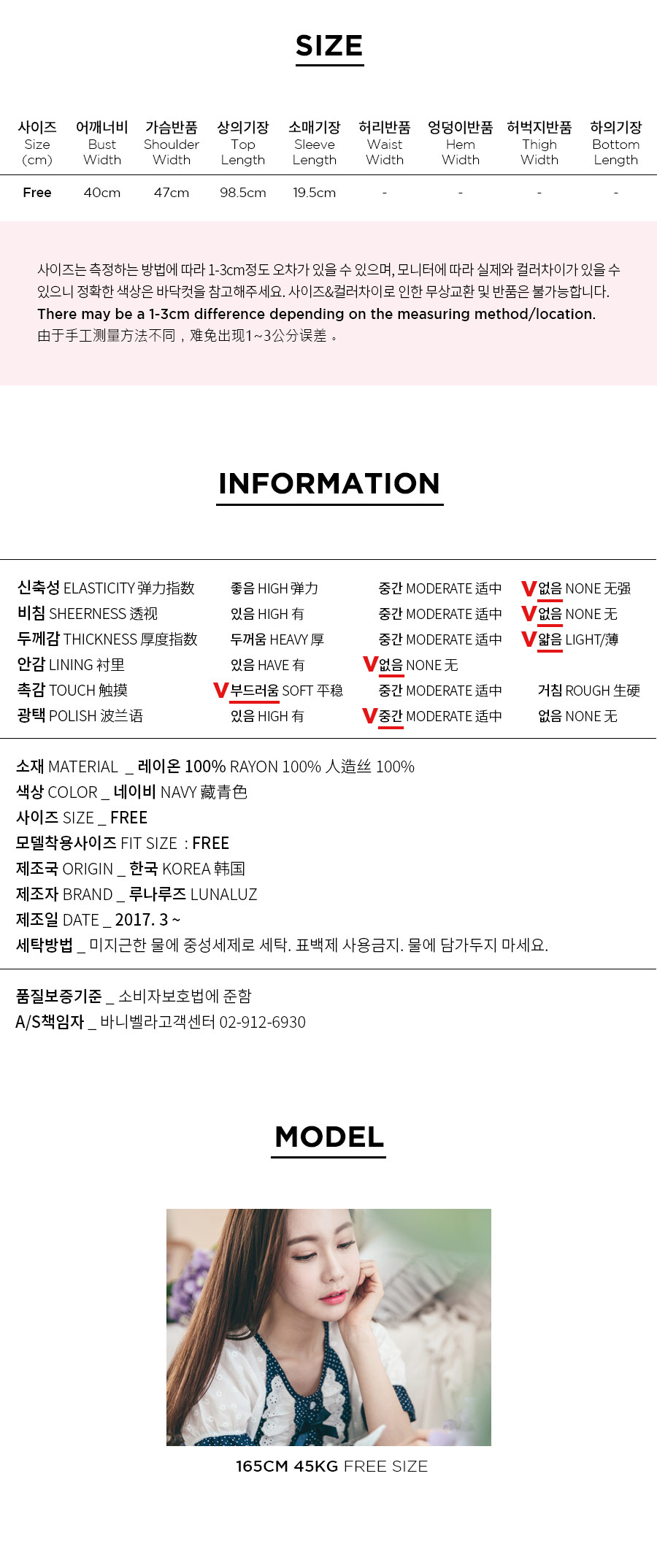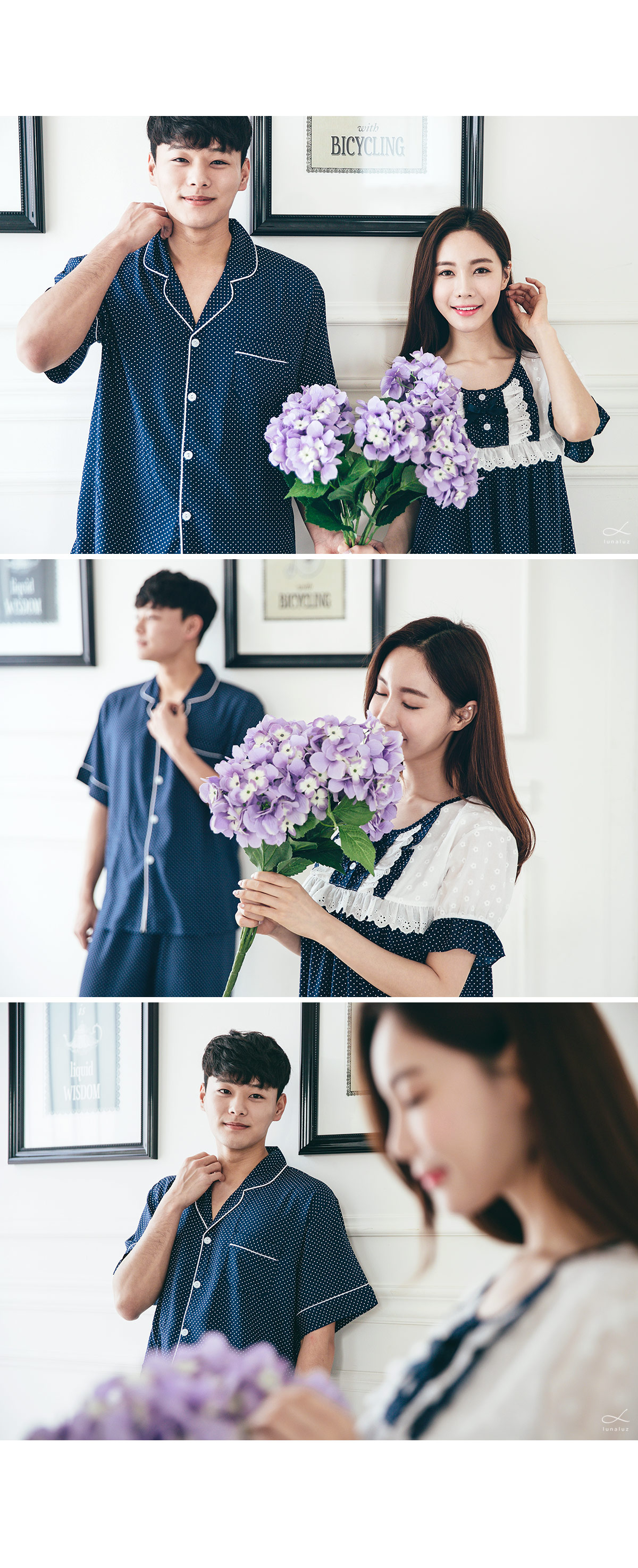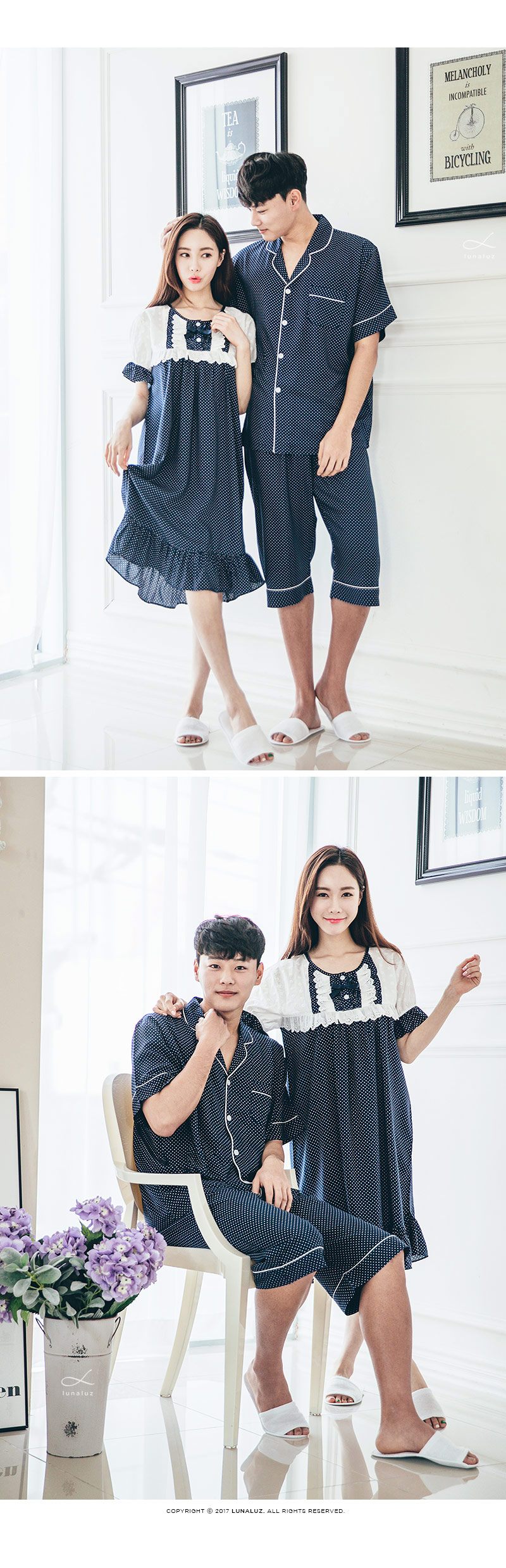 동일한 원단, 동일한 디자인으로 입으면 더 스타일리쉬한 무드를 취할 수 있는 커플 잠옷으로 강력 추천해 드리고 싶어요^^ 단정하고, 심플한 느낌이 매력적인 커플 잠옷인데요. 심플하고 young한 분위기를 연출해주는 잠옷으로 전 연령 모든 분이 착용하셔도 정말 잘 어울리는 스타일이랍니다. 파이핑으로 깔끔하게 포인트를 주어 세련되고, 편안한 분위기가 감도는데요. 드레이프성이 좋은 레이온 소재로 착용감이 굉장히 좋고, 체형을 좀 더 슬림 하게 보완해줍니다. 실키한 느낌과 상쾌한 느낌에 더 만족해 하실 거에요. 흐늘거리는 원단에 꼼꼼한 파이핑 봉제 작업이 들어간 잠옷으로 퀄리티 높은 공정이 들어간 잠옷입니다. 포켓을 달아주어 포인트를 주었습니다. 시원하고 상쾌한 느낌이 도는 레이온 소재는 더운 여름 상쾌하고 산뜻하게 입기 좋습니다. 소재가 굉장히 실키 하여 피부에 닿는 느낌이 좋고, 피부가 민감하신 고객님들에겐 더 추천하고 싶은 잠옷입니다. 100%국내 제작으로 소재가 좋고, 봉제선이 깔끔하며 디자인에 퀄리티를 높여 주었습니다. 여성잠옷은 free사이즈로 평소 44반~66size까지 입으실 수 있는 패턴입니다.