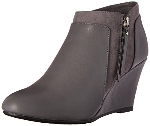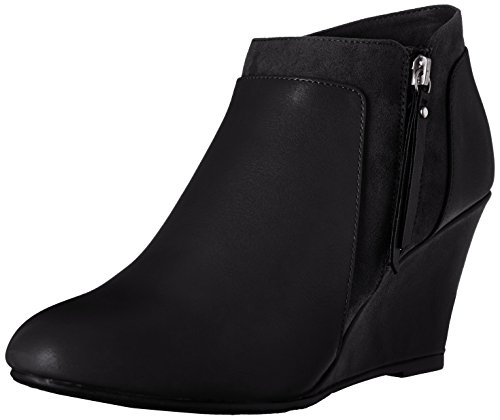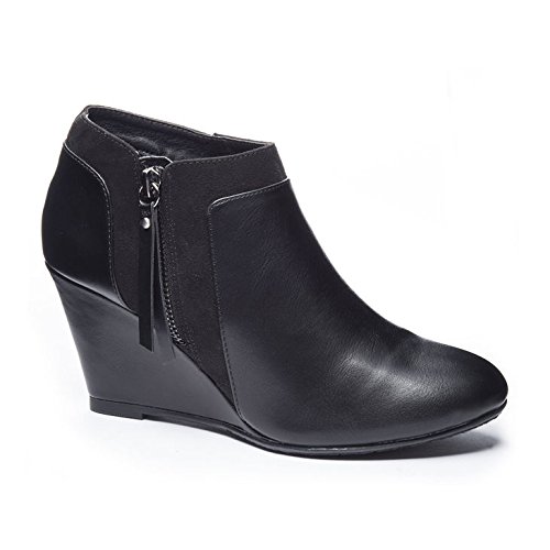 Product DescriptionMixed material ankle wedge bootie/shootie with side zip0