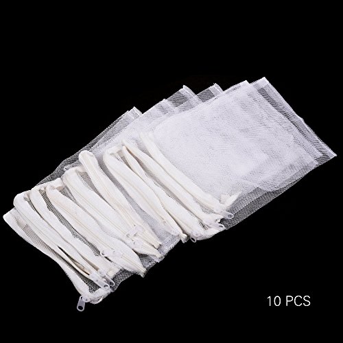 Kloud City 10PCS 8'' x 6'' White Color Fish Tank Filter Mesh Bags with Plastic Zippers , Aquarium Pond Filter Bag