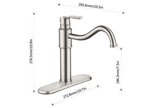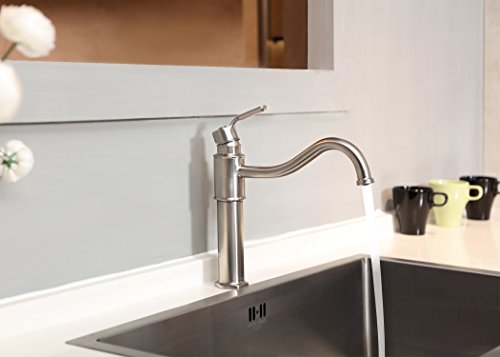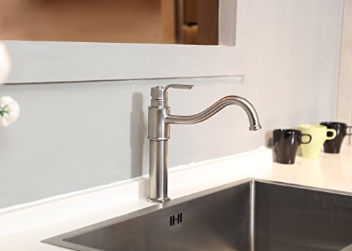 Sensible styling that complements any home. 8-Inch long spout swings 360-Degree for added convenience; Single straight lever handle for ease of control.