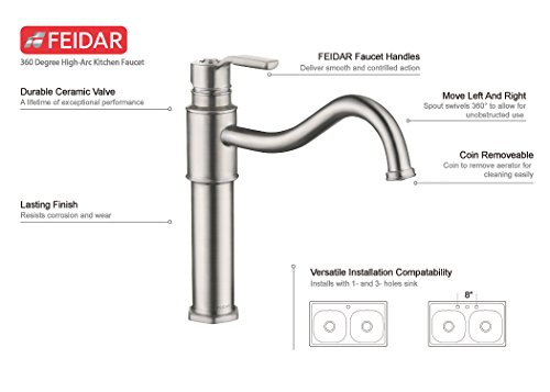 FEIDAR 360 Degree High-Arc Kitchen Faucet with Modern Industrial Design , Stainless Steel