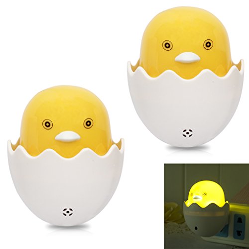 Amariver Plug In LED Night Light with Auto Sensor for Kids Bedroom, Nursery, Baby Room, Bathroom or Hallway, Yellow, Pack of 2, Cute Little Chick Egg Design