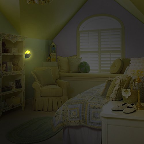 - It gives off a soft glow, which is pleasing to the eye at night, the yellow glow promotes deep sleep and helps children relax and feel secure all night long. The built in light sensor works well, keeping the light off while bright, and slowly ramping up intensity as light levels get lower
