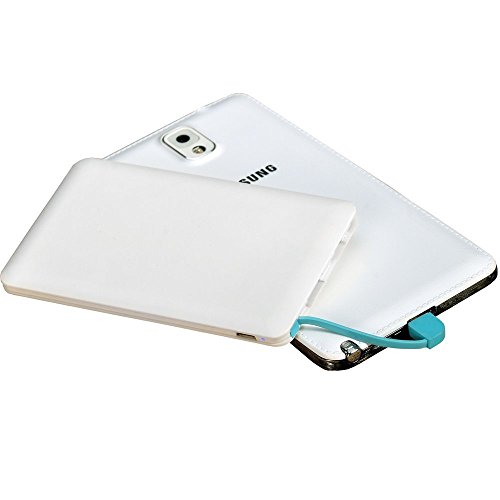 Credit Card Power Bank, WECODO 4000mAh Ultra-Thin Wallet Sized Portable External Battery Charger Built-in Lightning & Micro USB Cable for USB-Charged Devices (White)