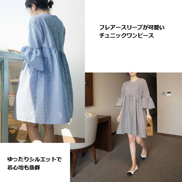 〓〓〓〓〓〓〓〓人気のギンガムチェック柄が涼しげなチュニックワンピースふわっとしたフレアースリーブがポイントボトムやレギンス等に合わせてもナチュラルに着れるチュニックワンピース〓〓〓〓〓〓〓〓◆素材◆コットン/ポリエステル◆サイズ◆/М~Lサイズ/フリーサイズ/バスト112cm前後/袖丈40cm前後/着丈90cm前後◆カラー◆ブラック/ブルー〓〓〓〓〓〓〓〓商品のご案内海外輸入商品の為リーズナブル価格でご提供をさせて頂いております。下記の事項をご確認ご了承の上ご注文をお願い致します。♯予約商品になります。生産輸入の関係で発送日が前後する場合がございます。♯再生産の関係で画像とデザイン、多少の色具合が異なる場合がございます。♯メジャーでの測定の為若干の誤差はご了承下さい。♯生地不良等の関係で生産中止になる場合がございます。♯海外代理店より輸入の為、商品タグ、洗濯表示がない場合がございます。