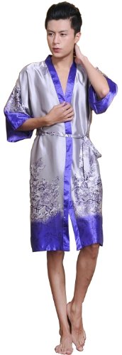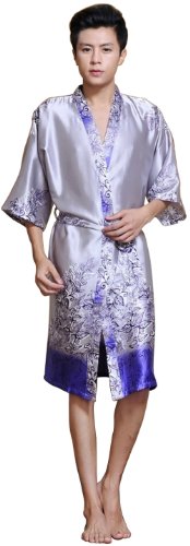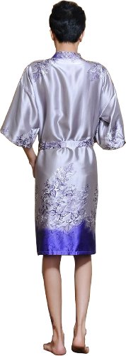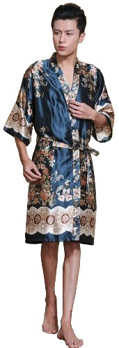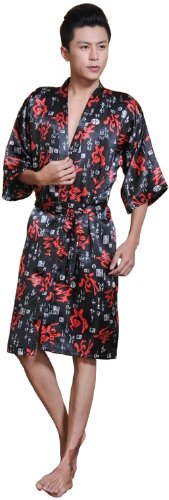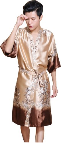 Sunrise Men's Kimono Collar Printed Satin Bathrobe Robe (4)