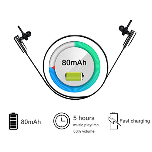 Feature : High-definition sound quality, CVC 6.0 digital noise reduction technology, makes you enjoy higher quality and clearer sound. / CSR V4.1 Bluetooth, is compatible with most Bluetooth devices, 10 meter connection distance. / 80mAh lithium battery provides 3~4 hours music time (80% volume), 5~6 hours talking time, 200 hours standby time. / Bluetooth headphones with mic. Built-in mic for hands free phone calls. It is convenient for you to answer or hang up a call when the wireless earbuds are connected with your phone. / Ergonomic design, ensure you get it perfect fit and remain stable in your ear during exercising, soft and comfortable, suitable for long-time wear.