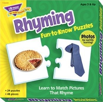 -. Feature : Present short and long vowel rhyming words with photo sound cues. / 24 two-piece puzzles, 48 pieces / Durable 3" x 3" pieces / Photos for real life learning / Photos for real-life learning / Durable, 3" x 3" pieces / Sturdy storage box / Only matching pieces fit together / Great for classroom and home use