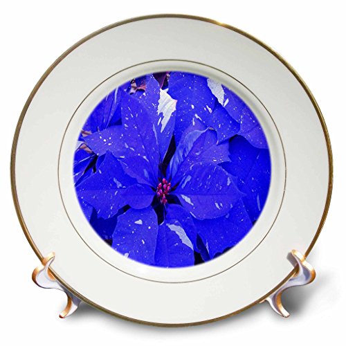 3dRose cp_36946_1 Blue Streaked Poinsettias-Porcelain Plate, 8-Inch