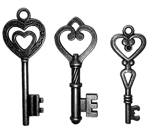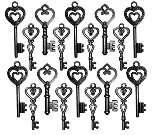 Salome Idea 30PCS Assorted Antique Skeleton Keys, Vintage Steampunk Keys, Heart Collection (Black)