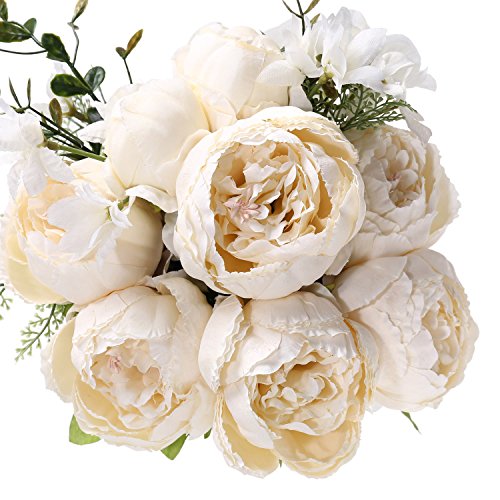 Fake Artificial Flowers Vintage Silk Peony Flowers Bouquet for Home Wedding Centerpieces Décor and DIY,Ivory