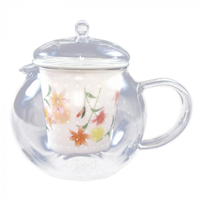 ガラスのティーポットに有田焼の茶こし&蓋がおしゃれ☆日本茶・紅茶・中国茶・ハーブティーなどいろんなお茶にご使用下さい。 |