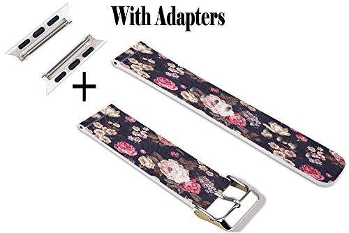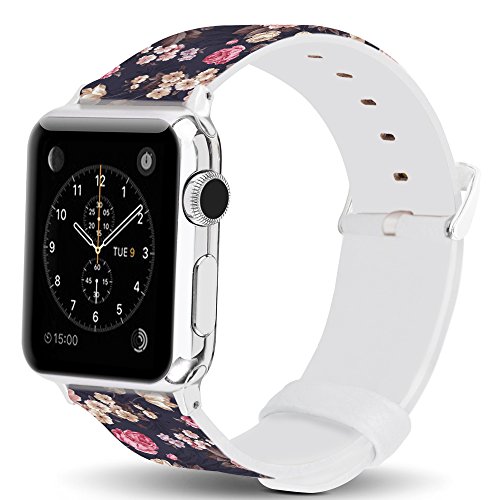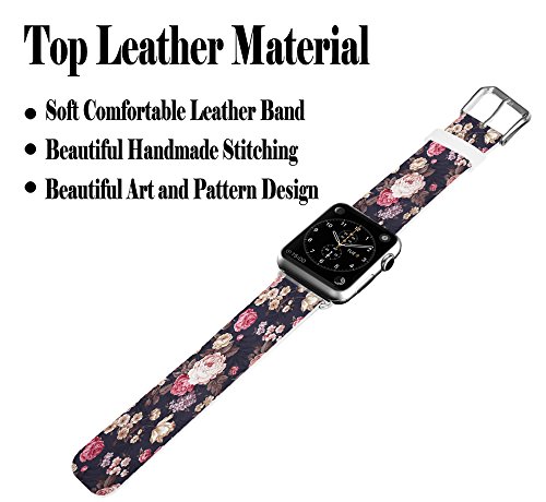 Jolook Apple Watch Band Series 1 Series 2, Soft Leather Replacement Sports Band for 38mm Apple Watch 2015 & 2016 All Models - Vintage Floral (Not fit 42mm Versions)