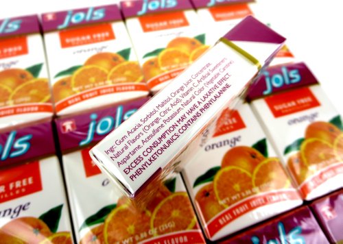 -. Binding : Misc. -. Brand : Black Tie Mercantile -. EAN : 0651818908974 -. Feature : Includes twelve 0.88 oz packets of Jols Sugar Free Orange Pastilles / Sugar Free, Fat Free, Gluten Free / Naturally Colored and Flavored / Product of Australia / In a Black Tie Mercantile Signature™ Gift Box (Pictured) -. NumberOfItems : 12 -. ProductGroup : Grocery -. ProductTypeName : GROCERY -. Title : Jols Sugar Free Orange Pastilles, 0.88 oz Packets in a Gift Box (Pack of 12) -. UPC : 651818908974