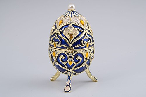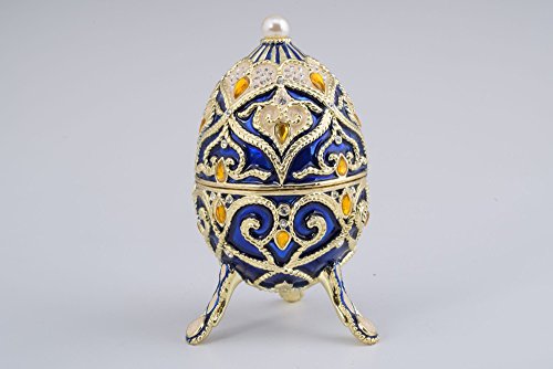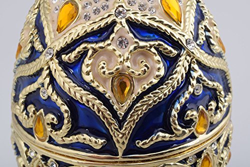 Blue Faberge Style Egg Trinket Box Decorated with Yellow Austrian Crystals