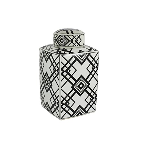 Sagebrook Home Decorative Ceramic Square Covered Jar, White, 9x9x15.75, Black
