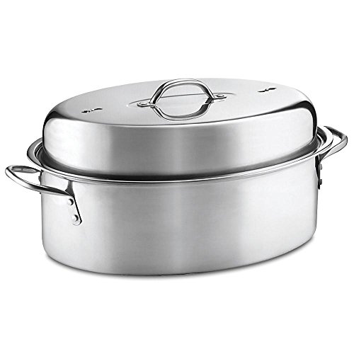 - Stainless steel roaster with cover, Cleans up beautifully.