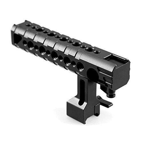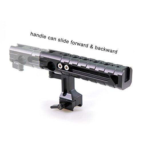 Except for sliding it forward and backward on the NATO rail to balance the camera’s center of gravity, the handle is back and forth adjustable for you to find the balance position of your rig.