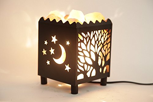 DIA Natural Himalayan Salt Lamp in Moon Tree Design Metal Basket with Dimmable Cord For Christmas And Halloween gifts