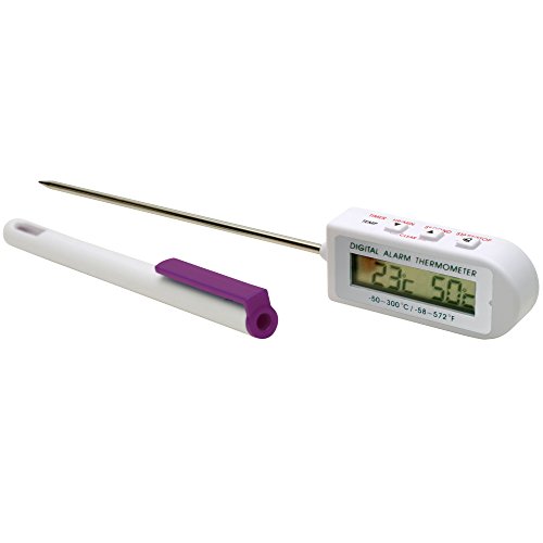 - Features a stainless steel temperature probe and probe cover with pocket clip, 99hr;59min timer, high temperature alarm and 0.1 resolution
