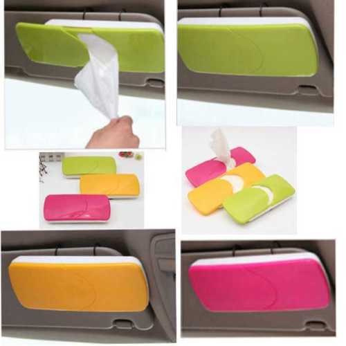 Color: Green/Yellow/Pink (send by random)Features:With clip and easy to installJust slip the lid to get tissueBe made from ABS, it's durableWeight(Include Package): 290gSize: 23(L)x10.5(W)x2.5(H)cmPackage Package:1x Car Tissue Box cover