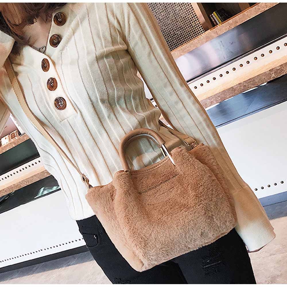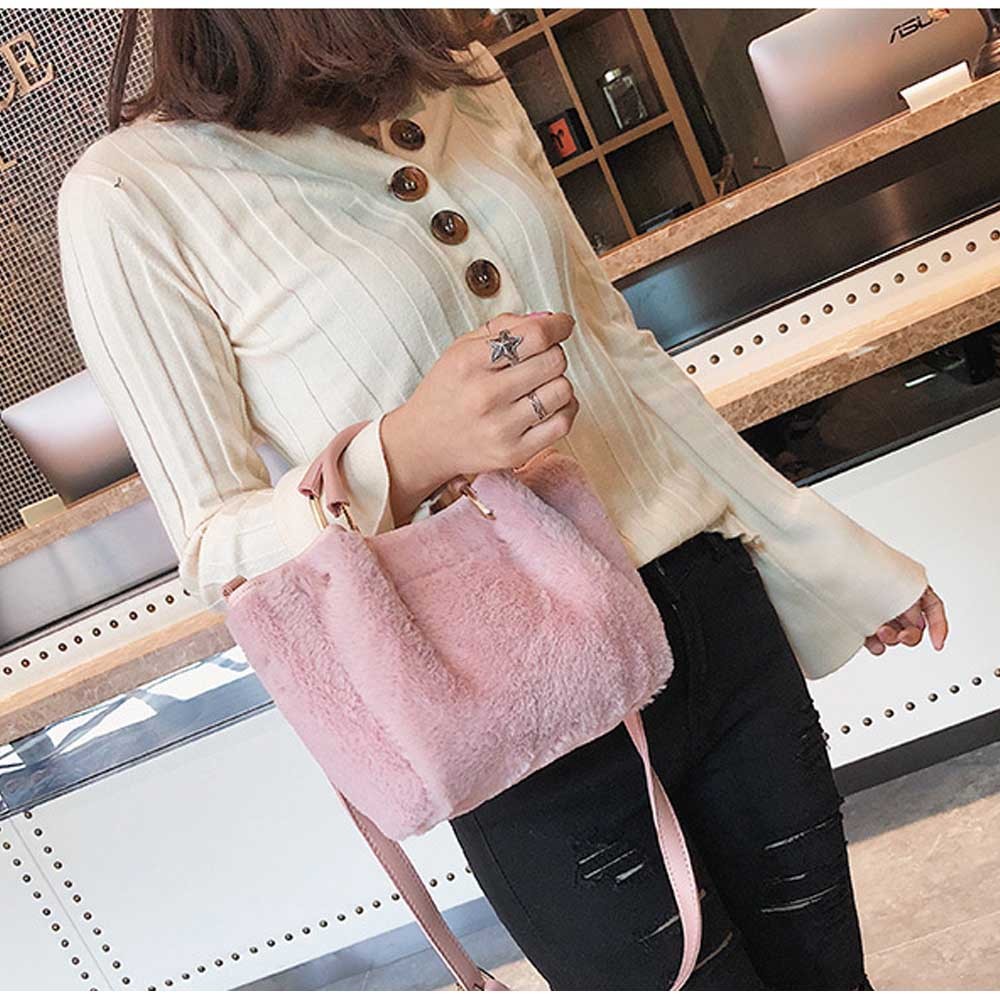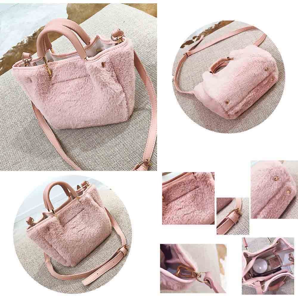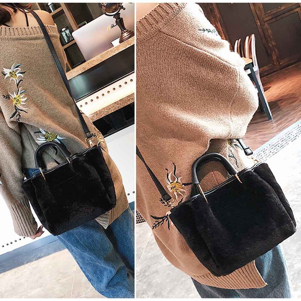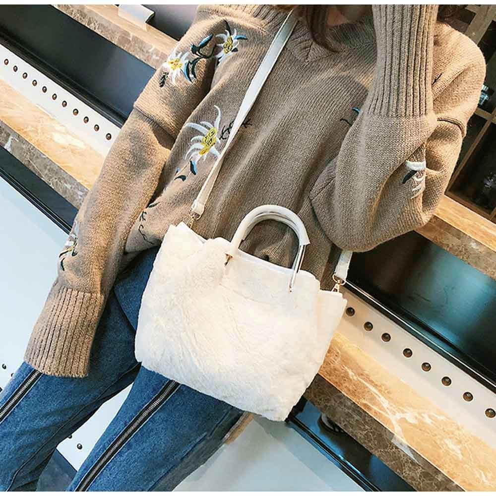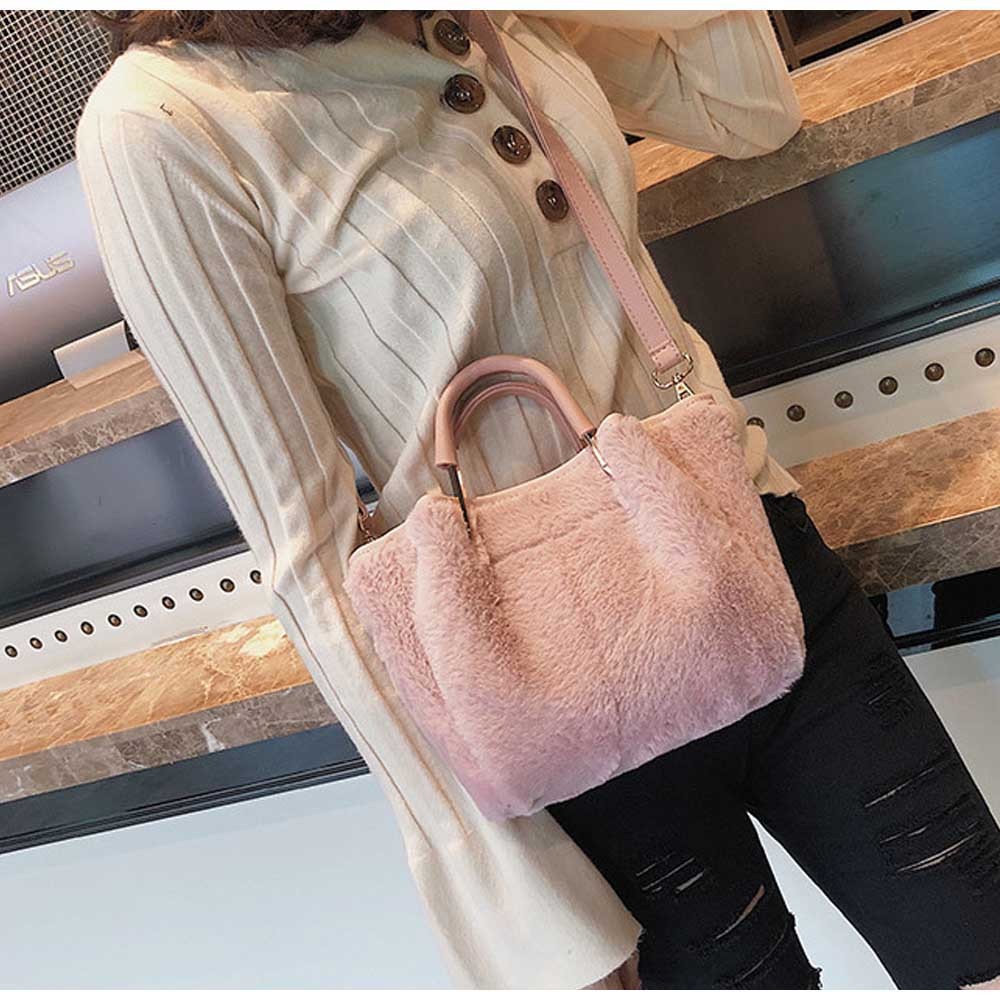 ファーをあしらった愛らしい存在感を放つショルダー付きハンドバッグ
