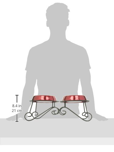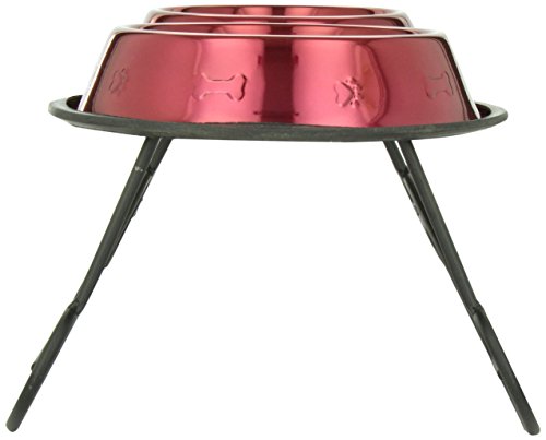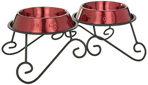 -. Title : Platinum Pets 3-Cup Scroll Double Diner Stand with Two Bowls, Candy Apple Red