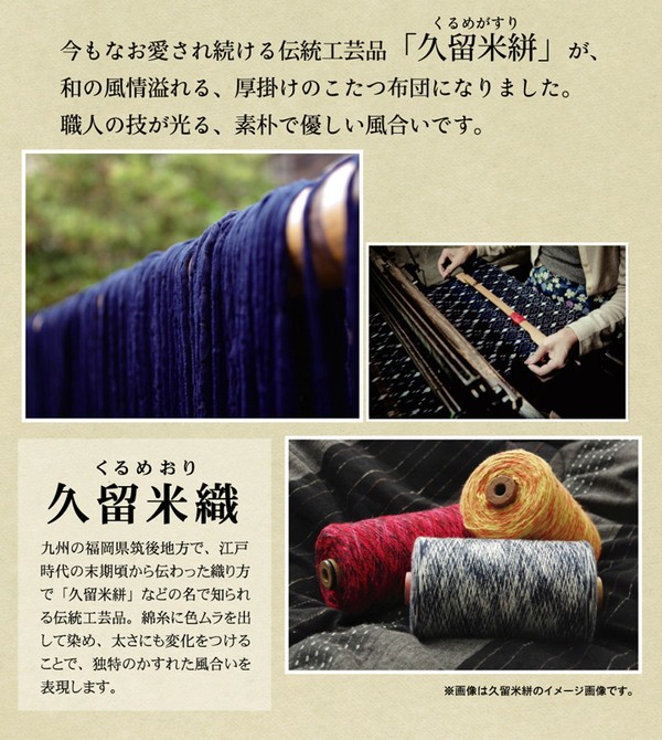 【素材】表地=綿100%(久留米織) 裏地=綿100% 中綿=ポリエステル50%、綿50% 3.4kg