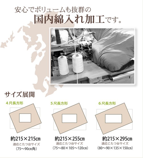 【適応サイズ】80~90×135×150cm幅のこたつ台に適応