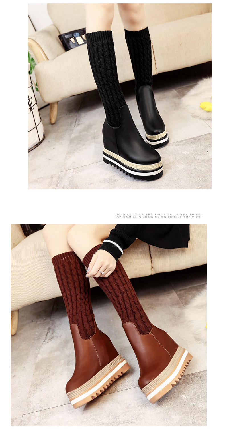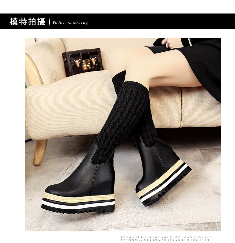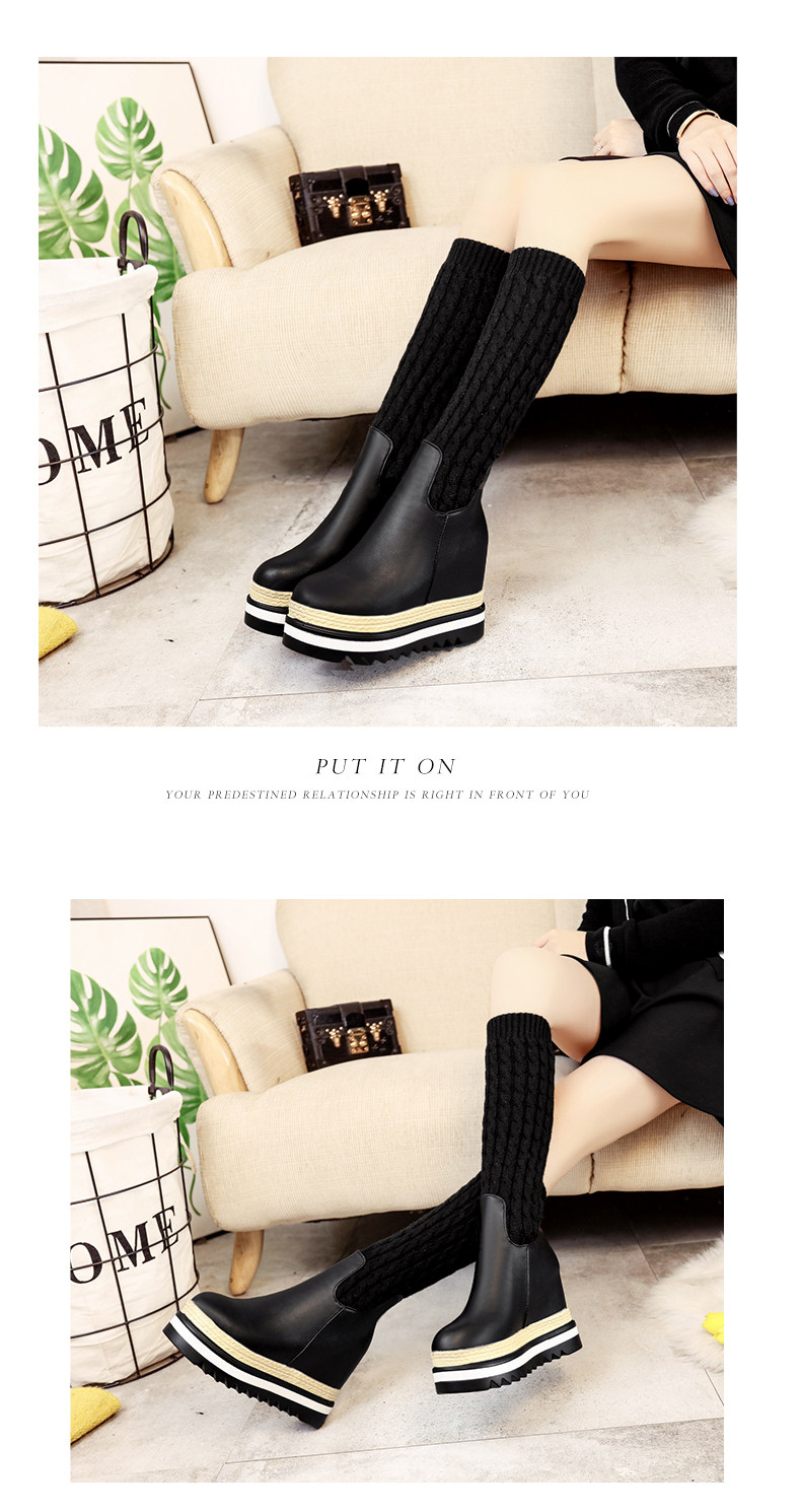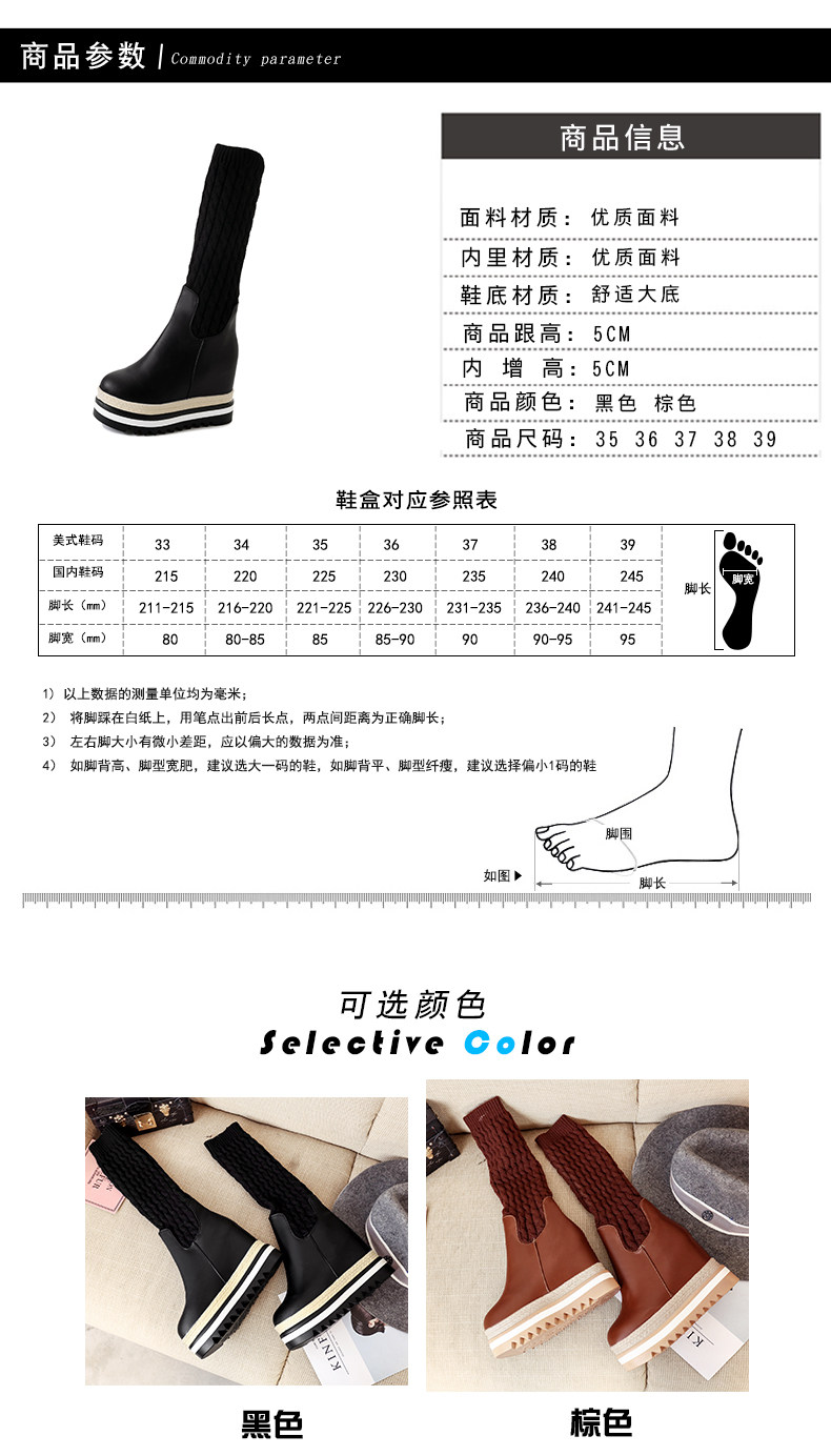 韩版内增高中筒靴女冬季新款松糕厚底长靴百搭休闲女棉靴子