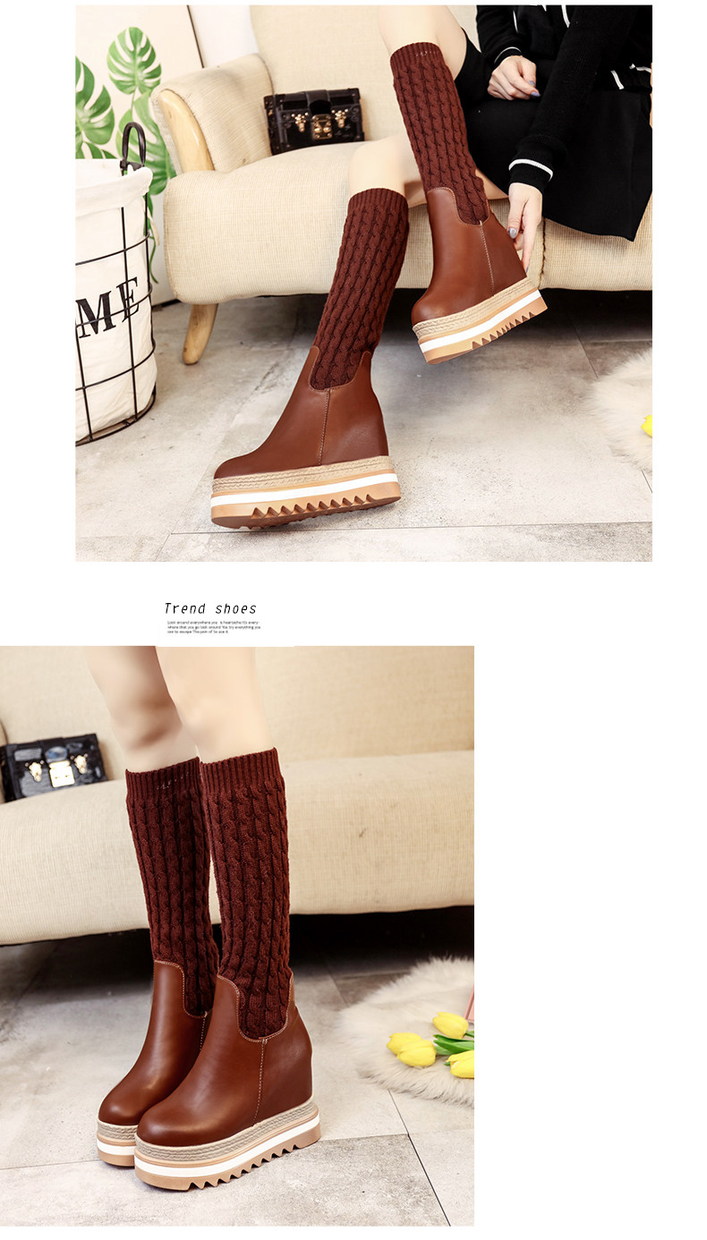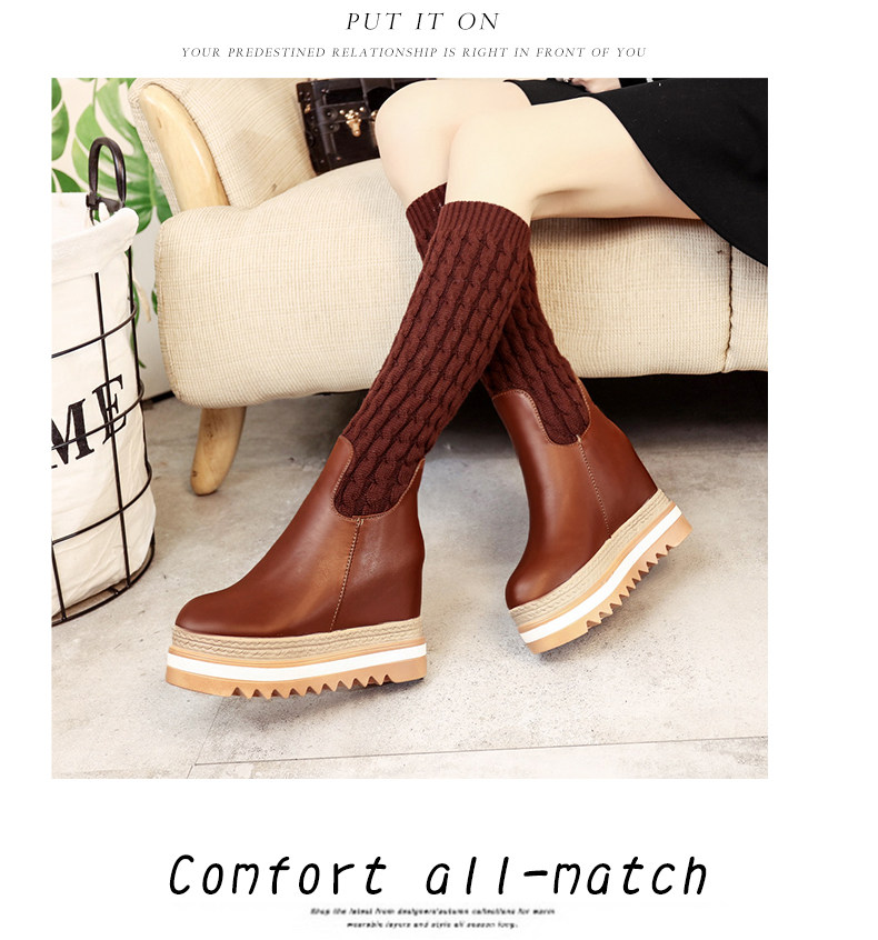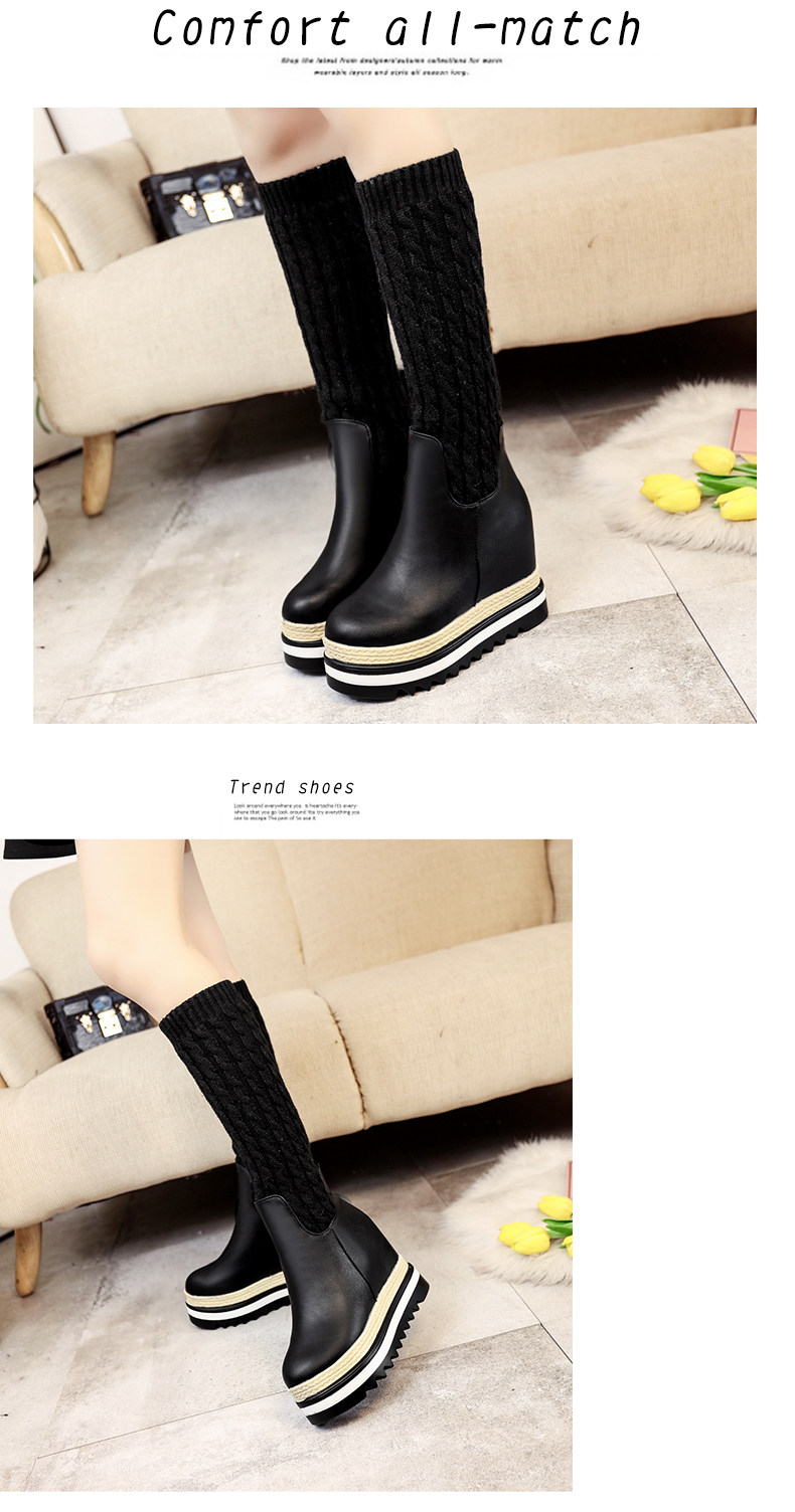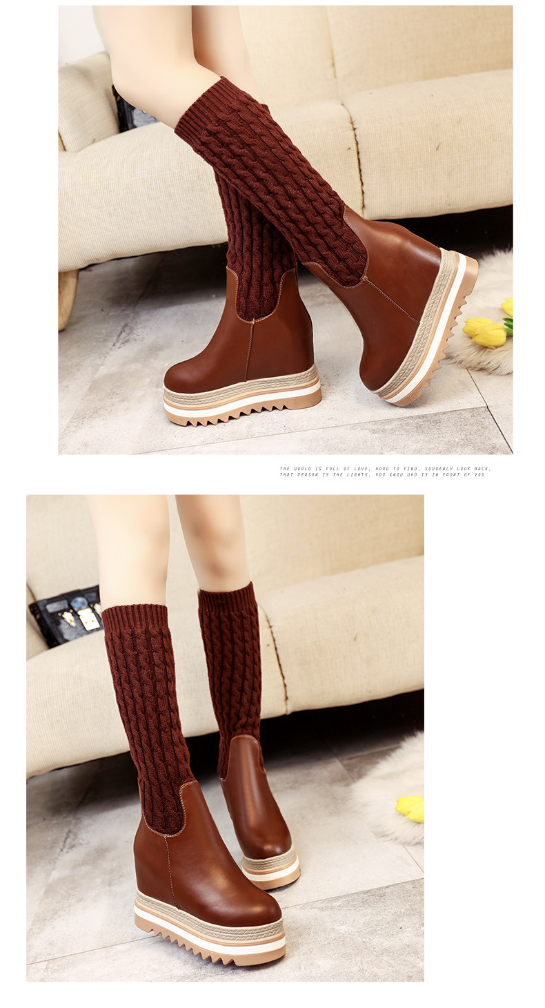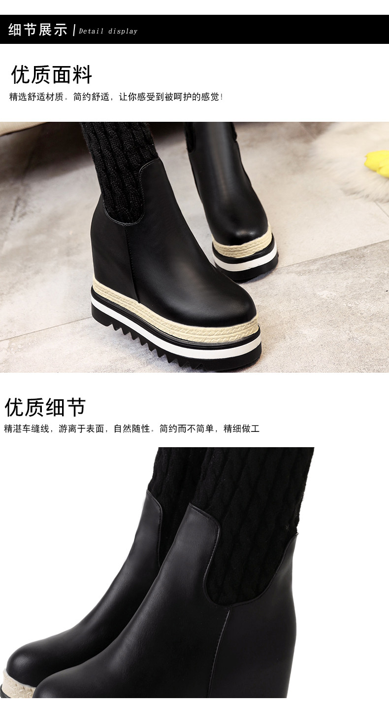 韩版内增高中筒靴女冬季新款松糕厚底长靴百搭休闲女棉靴子