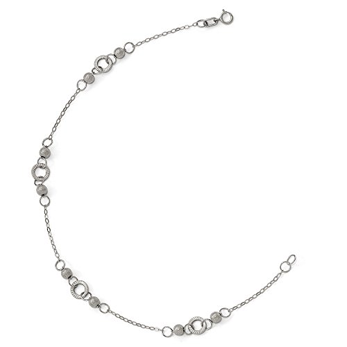 -. Binding : Jewelry -. Brand : The Black Bow -. Color : White -. Department : womens -. Feature : Laser textured & d/c 14k white gold design / Approximate width 7mm / Approximate length 9.5 inches / Weight is Approximately 1.7 grams / Includes our custom gift box -. Label : The Black Bow -. Manufacturer : The Black Bow -. Model : A8689 -. MPN : A8689 -. NumberOfItems : 1 -. PackageQuantity : 1 -. PartNumber : A8689 -. ProductGroup : Jewelry -. ProductTypeName : FINENECKLACEBRACELETANKLET -. Publisher : The Black Bow -. Studio : The Black Bow -. Title : Black Bow Jewelry 14k White Gold Diamond-Cut and Laser Textured Link Anklet, 9.5 Inch