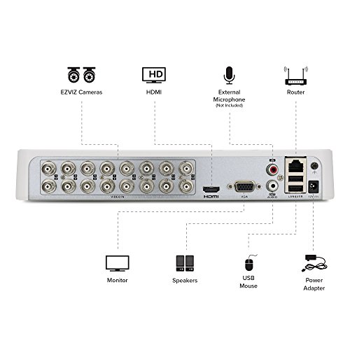 EZVIZ HD 720p Outdoor Surveillance System, 8 Weatherproof HD Security Cameras, 16 Channel 2TB DVR Storage, 100ft Night Vision, Customizable Motion Detection
