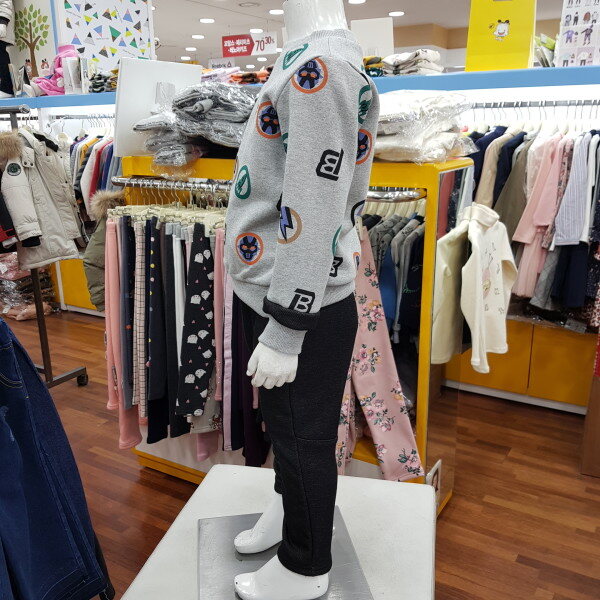 편하게 입을수있는 기모바지입니다 착용감이좋구 따듯해요 정사이즈며 마네킹 110입었어요 통통한 친구는 크게주문해주세요
