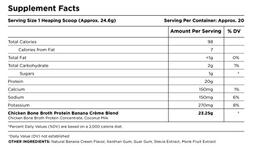New Bone Broth Protein Cinnamon Apple & Banana Crème 2pk. Introducing an all-natural, easily digestible protein powder complete with 20g of body-building, gut-friendly protein per serving! It's artisanally produced with no added salt, colors, preservatives, or artificial ingredients. Bone Broth Protein Greens is Paleo-friendly, free of common allergens and the ideal protein source for those who are sensitive to dairy, grains, eggs, beef, nuts, and legumes-carefully-crafted quality you can trust and tested to be GMO free. Get the health benefits of today's hottest superfood, bone broth-in a nourishing protein powder that is SMOOTH to blend, convenient to use and EASY to digest. Healthy detoxification | Gut and immune system support | Healthy and vibrant skin, hair and nails | Metabolism and a healthy weightFeature