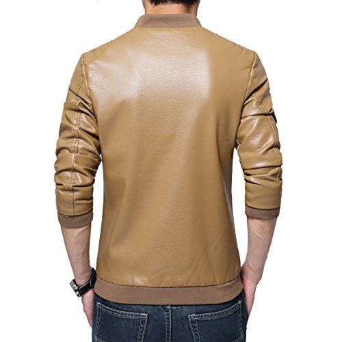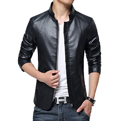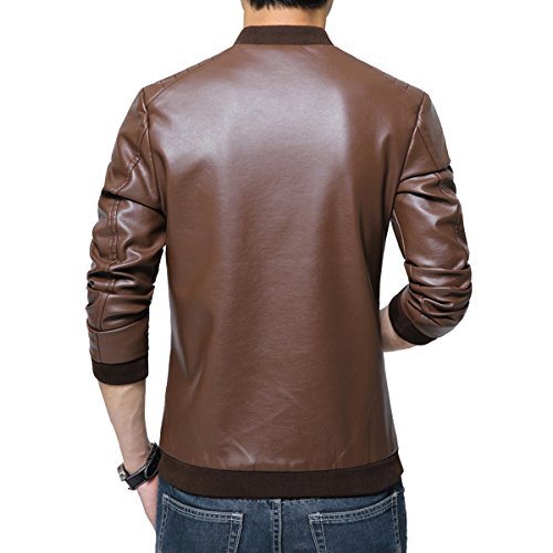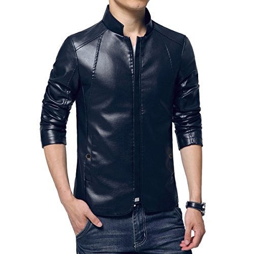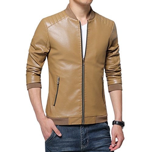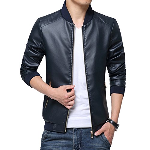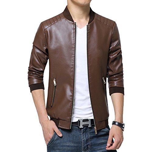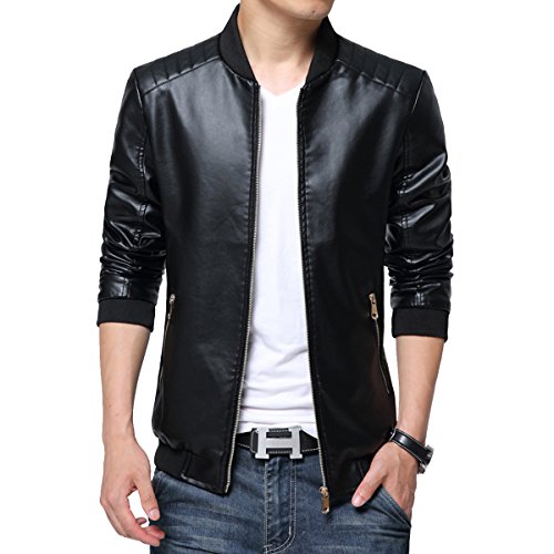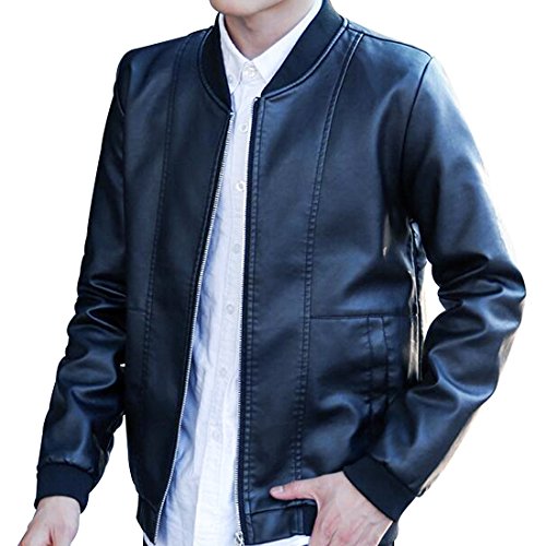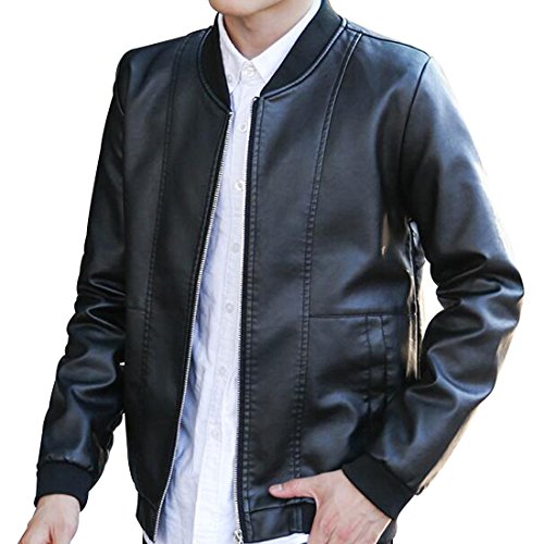 Binding : Apparel Product Description Homaok Men's Smooth Zip-up Leather Collar Bomber Jacket Thank you for choosing Homaok products, we hope it bring you great usage experience. Wearing season: spring,autumn,winter Style: Suitable for College, Biking, Motorcycle, Cycling, Outdoor, Daily, Conventional, Party, Performance When you buy this leather jacket, please check the size chart below or the last image above. To ensure what you received works in good condition, all the products we sold out have passed strict quality test. If you have any questions, please contact us through Email ASAP, we will do our best to help you. Cleaning and care approach: 1,If there is only a partial stains fur coats, warm up with a hot towel 2,Wipe clean with pecial leather cleaning agent would be great,clean with a wet towel at last 3,Do not exposure,Hang dry in shade Size Measurements [ Bust / Shoulder / Sleeve / Length ] Size S: [ 44 / 18.5 / 26 / 27.6 ] inch Size M: [ 45.7 / 19 / 26 / 28.1 ] inch Size L: [ 47.2 / 19.7 / 26.4 /28.5] inch 0
