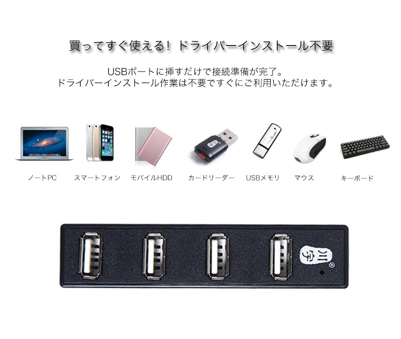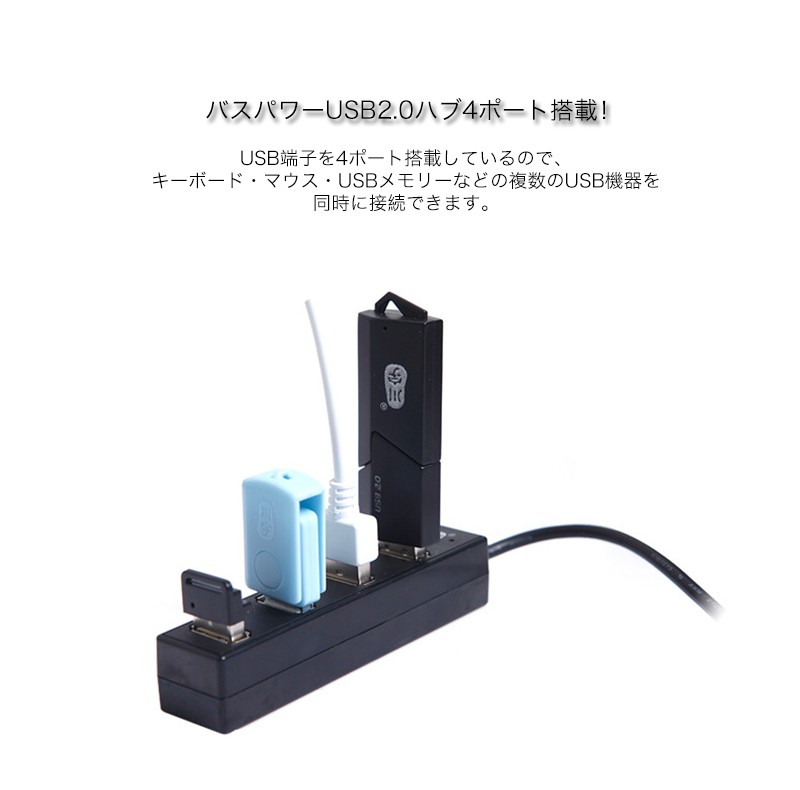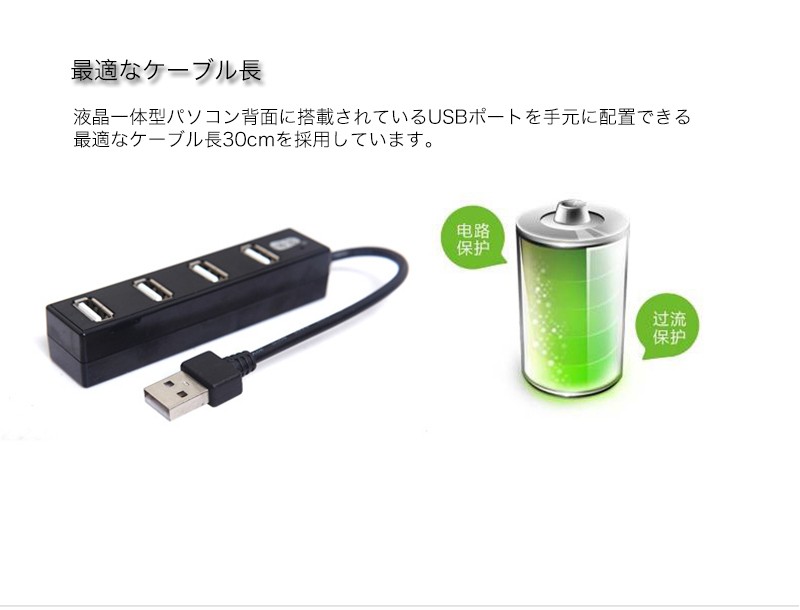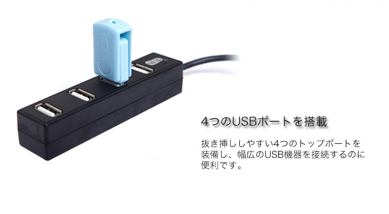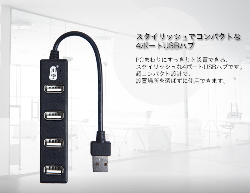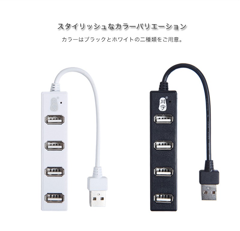 ★「商品特徴」PCまわりにすっきりと設置できる、スタイリッシュな4ポートUSBハブです。超コンパクト設計で、設置場所を選ばずに使用できます。USB端子を4ポート搭載しているので、キーボード・マウス・USBメモリーなどの複数のUSB機器を同時に接続できます。ノートPC/スマートフォン/モバイルHDD/USBメモリ/マウス/キーボードなどUSBポートに挿すだけで接続準備が完了。 ★「カラー」ホワイト(白)、ブラック(黒)★「対応機種」Windows 8、Windows 7(SP1)、Windows 32bit版Vista(~SP1)、32bit版XP(SP1~SP3)、2000(SP4)、Me、98が動作するPC/AT互換機、Mac OS X 10.3~10.5が動作するIntelMac機、Mac OS X 10.0~10.5が動作するPowerPC機★「キーワード」USB ハブ 4ポート バスパワー ケーブル長さ30cm 高速 安定 データ転送 便利 iPhone/iPad/Xperia/Galaxyに充電可能 パソコン/ノートパソコンなど適用