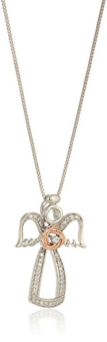 -. Title : Sterling Silver and 14k Rose Gold Angel Pendant Necklace (1/10cttw, J-K Color, I2-I3 Clarity), 18"