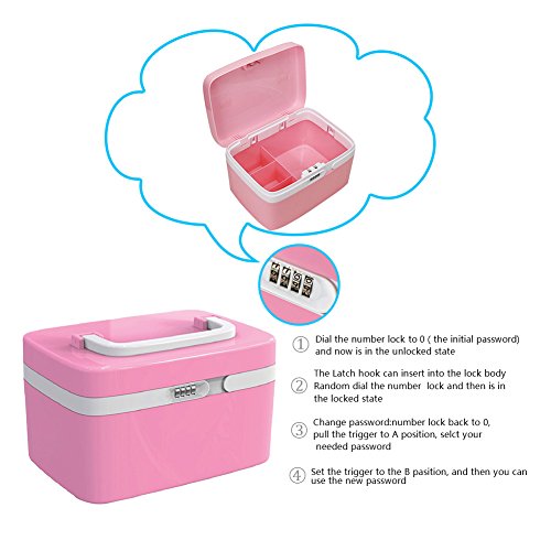 Studio : EVERTOP Publisher : EVERTOP Binding : Kitchen Product Description From EVERTOP: EVERTOP is a manufacturer producing high quality products and providing good customer service to our customers worldwide. Product Features: ?Keep all your medical necessities organized in this medicine storage box. Stores, organizes, and protects medical supplies from moisture damage ?The interior has different compartments with fixed dividers. Different sections allow you to organize medical supply and medicines by size and keep them easy to access ?It accommodates a generous supply of bottles, boxes, packets and jars. A small compartment in the lid provides quick access to small items like scissors, tweezers and thermometers ?Unique coded lock design, You can keep the medicines away from children ?With the over-sized swivel handle and brass bail latch makes carrying or transportation easy,suitable for family and medical institutions.?It's perfect for use as a mini first aid kit anywhere you need it? Parameter: ? Color:Pink ? Model: FD-MSB-R ? Material: ABS 304 Steel Copper? ? Weight: 1.16kg/2.56lb ? Product Size: 27.5x18.5x16 cm (10.9x7.3x6.3 inch) Note: ?The initial password is four "0", please well keep the resetting password after resetting it.Besides, the first aid essentials and medicines are not included in the package ? Please see the instruction before you set the password ? Please contact us if you have problem on setting the code 0