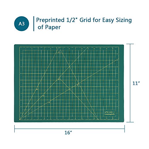LeaningTech LTC-A3 Self Healing Cutting Mat 3-Ply Single Sided Non Slip Green Great for Scrapbooking, Quilting, Sewing and all Arts & Crafts Projects