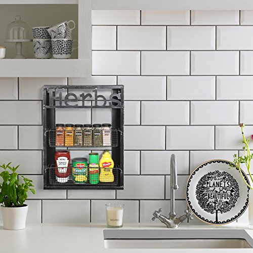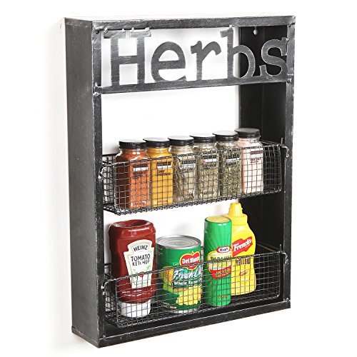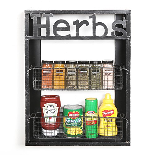 2 Tier Wall Mounted Spice Storage Rack, Rustic Metal Wire Shelf Organizer, Black