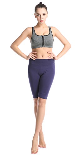ABUSA Women's Cotton Workout Bike Yoga Shorts - Tummy Control L Deepblue