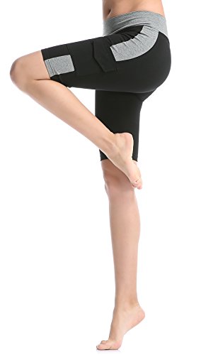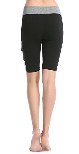 ABUSA Women's Cotton Workout Bike Yoga Shorts - Tummy Control(L,Pack of 2 - Black & Grey)