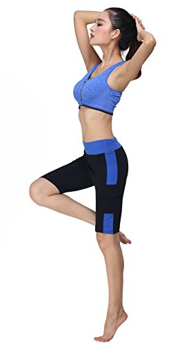 ABUSA Women's YOGA Leggings Exercise Workout Shorts,Blue(2''),Large