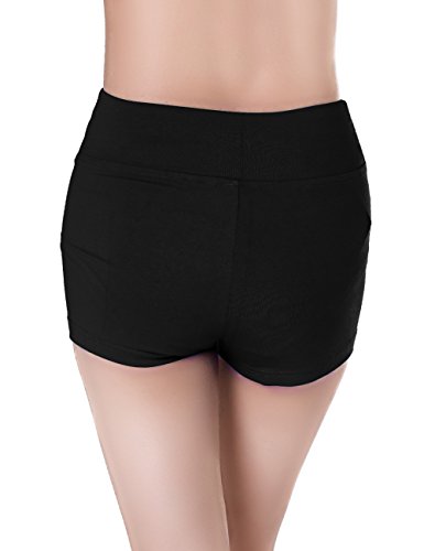 ABUSA Women's Cotton Activewear Exercise Running Shorts - Tummy Control L Black