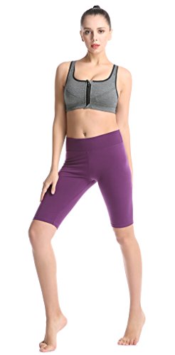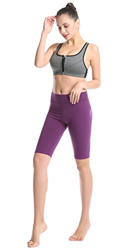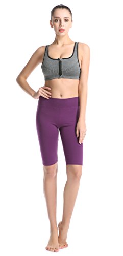 ABUSA Women's Cotton Workout Bike Yoga Shorts - Tummy Control M Purple
