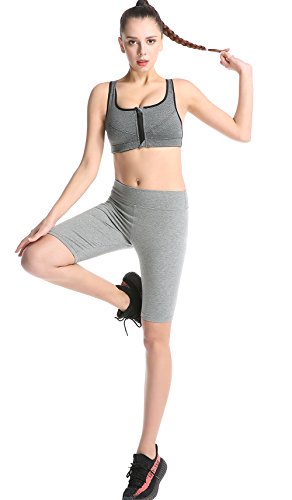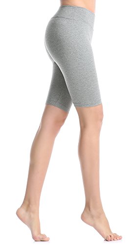 ABUSA Women's Cotton Workout Bike Yoga Shorts - Tummy Control L Gray