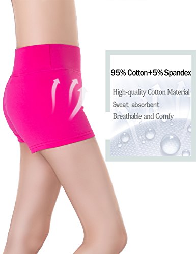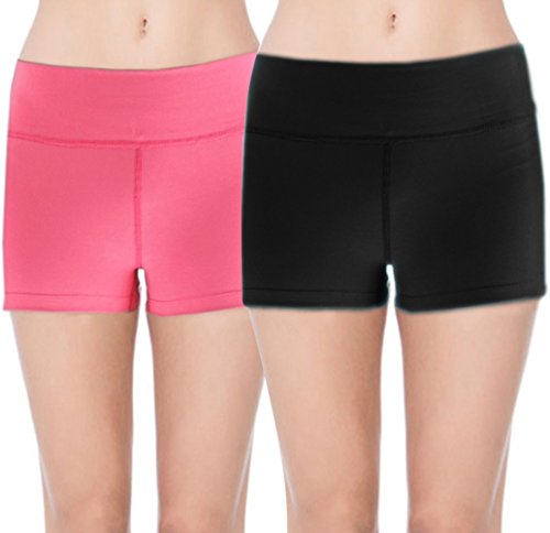 ABUSA Women's Cotton Activewear Exercise Running Shorts - Tummy Control(M,Pack of 2 - Black & Rose Red)