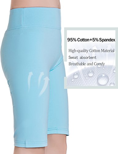 ABUSA Women's Cotton Activewear Exercise Running Shorts - Tummy Control L Skyblue