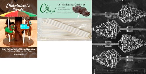 Cybrtrayd 45St25Bk-C038 'Tree Lolly' Christmas Chocolate Candy Mold with 25 4.5-Inch Lollipop Sticks and Chocolatier's Guide